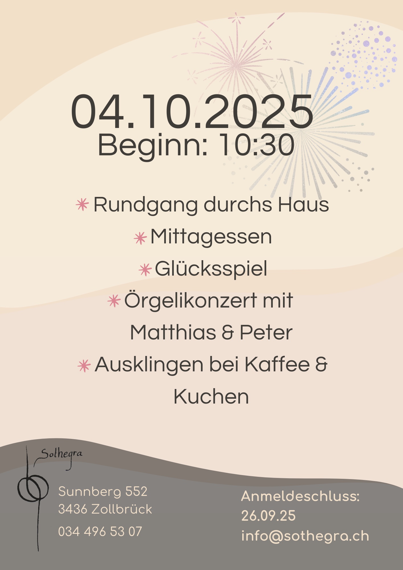 Die Sothegra Sozialtherapie GmbH ist eine sozialpädagogische Institution in Verbindung mit einem landwirtschaftlichen Betrieb. Sie bietet insgesamt 8 Plätze an, davon Ein – Zwei für berufliche Ausbildungen Landwirtschaft in Zusammenarbeit mit der IV (Praktisch bildungsfähige männliche Klienten ab 16 Jahren) und drei- vier Plätze für männliche erwachsene Klienten aus dem Kt. Bern oder ausserkantonaler Herkunft. Wir können auch Jugendliche ab 16 Jahren oder nach Abschluss der obligatorischen Schulzeit mit einer Verfügung der KESB für die Integration aufnehmen. Wohnheim mit Beschäftigung und oder geschütztem Arbeitsplatz, Wohnheim mit therapeutischem Arbeitsplatz.